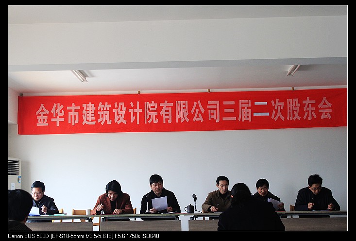 2011年3月26日,金華市建筑設(shè)計(jì)院有限公司第三屆二次股東會(huì)在公司十一樓會(huì)議室召開(kāi),會(huì)議對(duì)2010年度公司董事會(huì)報(bào)告、監(jiān)事報(bào)告、財(cái)務(wù)報(bào)告等進(jìn)行了審議和表決。